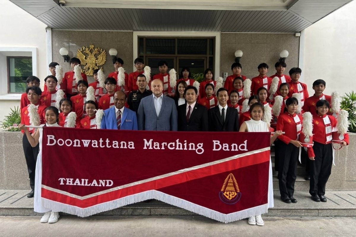 นายโกสินทร์ สืบประสิทธิ์วงศ์ นายกสมาคมวงโยธวาทิตแห่งประเทศไทย ได้รับเชิญจาก Mr. Evgeny Tomikhin เอกอัครราชทูตรัสเซียประจำประเทศไทย ให้เข้าเยี่ยมชมสถานเอกอัครราชทูตรัสเซียประจำประเทศไทย และได้ร่วมสนทนาเรื่องประวัติศาสตร์ระหว่างไทยและรัสเซีย และในปีนี้ครบรอบ 125 ปี ความสัมพันธ์ระหว่างประเทศไทยและรัสเซีย ซึ่งเป็นจังหวะที่ดีที่สมาคมวงโยธวาทิตแห่งประเทศไทยส่งตัวแทนวงโยธวาทิตประเทศไทยเข้าร่วมเทศกาลวงโยธวาทิตนานาชาติ ณ กรุงมอสโกในปีนี้ และในโอกาสนี้นายกสมาคมฯ ได้มอบโล่ที่ระลึกจากสมาคมวงโยธวาทิตแห่งประเทศไทยให้กับท่านเอกอัครราชทูตอีกด้วย
